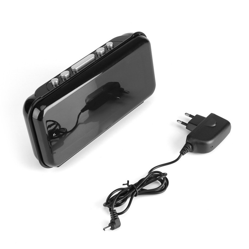 Настолният часовник с аларма, голям 1,8 LCD дисплей в черен цвят е стилен и модерен аксесоар за вашия дом или офис. Той е оборудван с големи светещи цифри, които не само визуализират часа ясно и разбираемо, но и придават на часовника изключителен шарм.