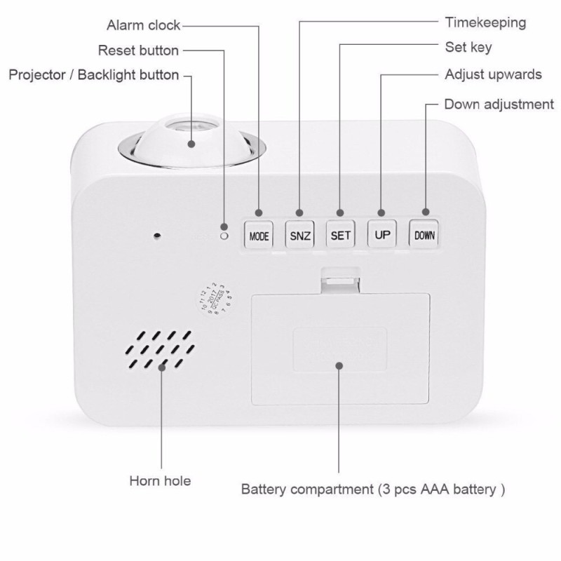 С впечатляващият си дизайн и функционалност, нашият часовник с проекция на час и активиране чрез пляскане е перфектното допълнение към вашия интериор. Той не само показва точното време, но и ви позволява да прожектирате часа на стена или тавана си.