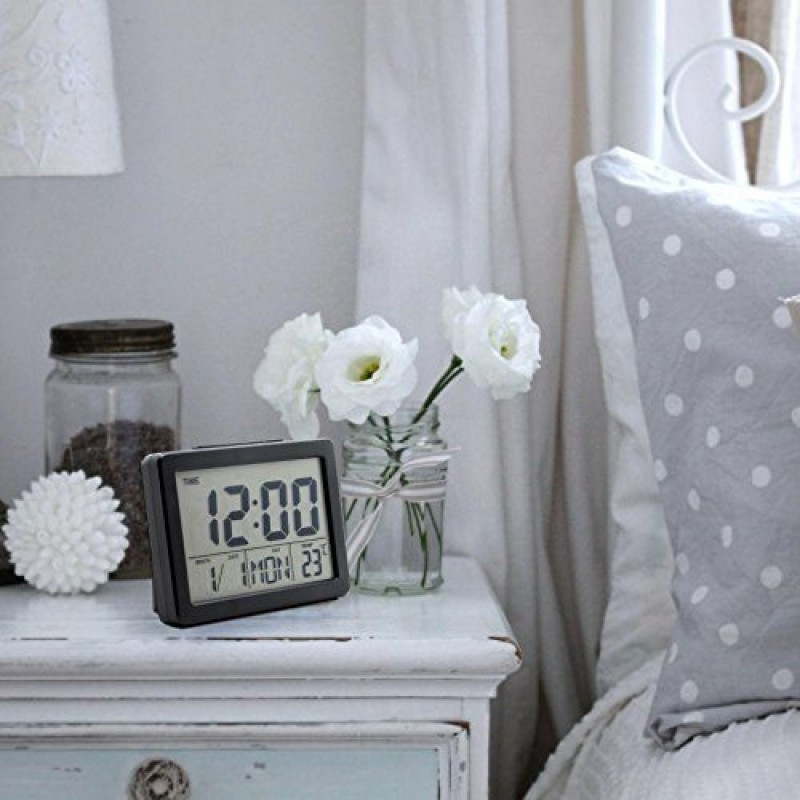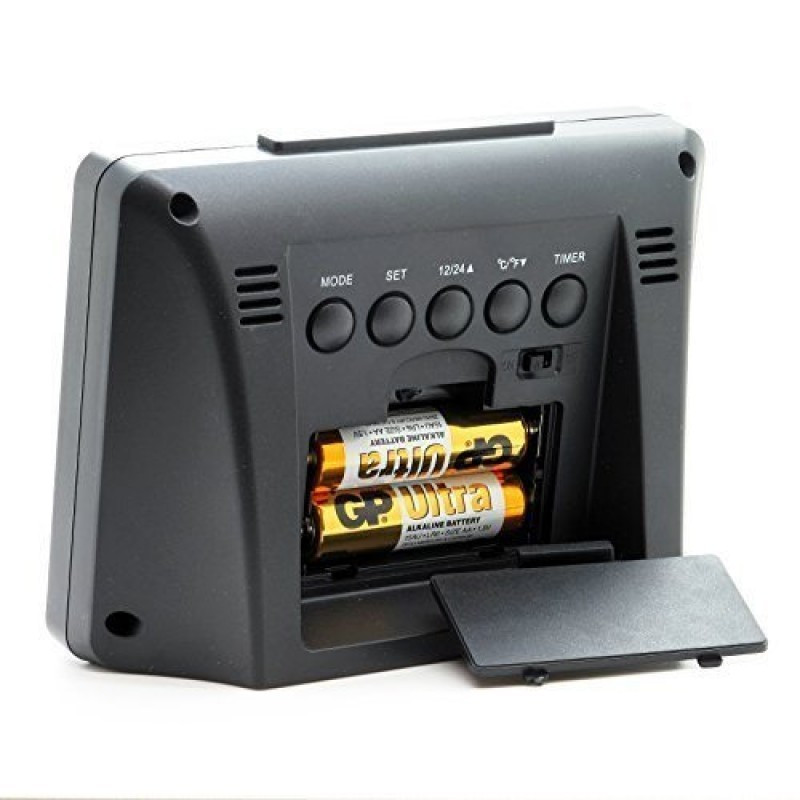 Освен това, този настолен часовник разполага с функция аларма със забавяне, така че можете да настроите сигнала, който ви събужда, да звучи повече от веднъж. Индикаторът за състояние на батерията ви предупреждава когато е необходимо да смените батериите, за да продължите да използвате часовника безпроблемно.