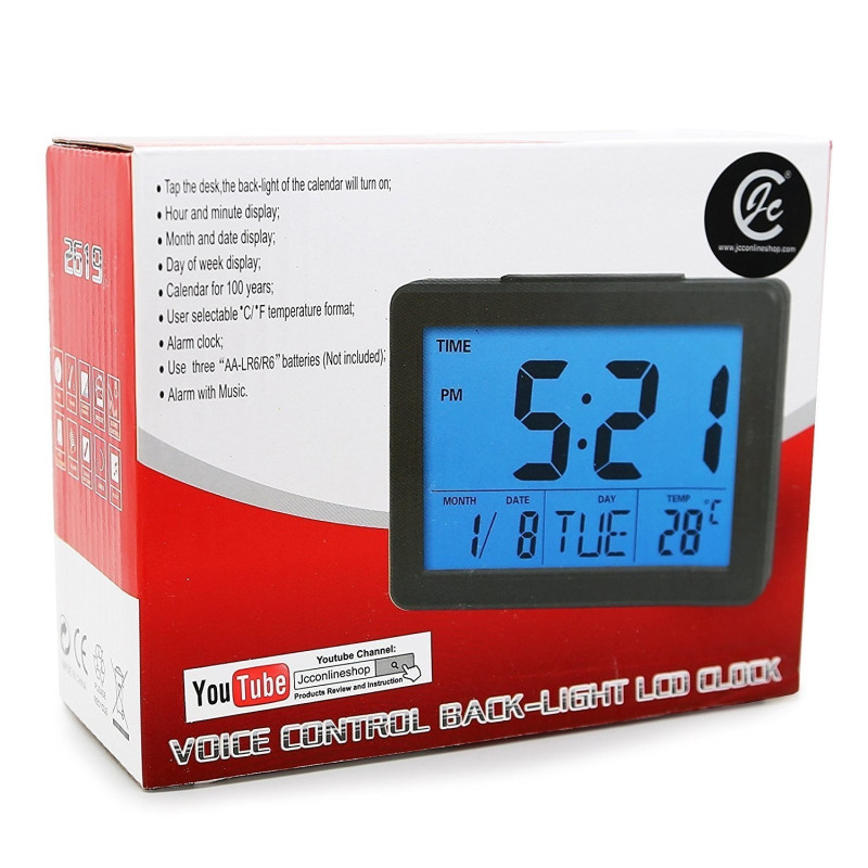 Ние представяме на Вашето внимание настолен часовник с термометър, календар и гласов контрол - перфектното съчетание от функционалност и стил. Този електронен настолен часовник ще впечатли със своя светещ дисплей и гласов контрол, който го прави изключително лесен за употреба.
