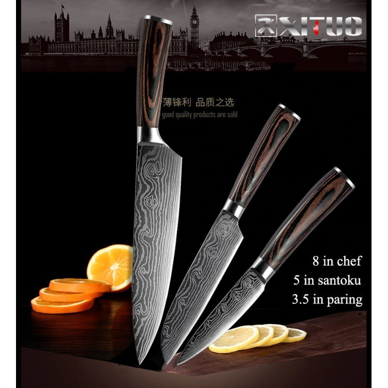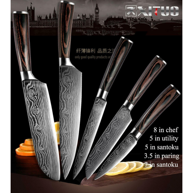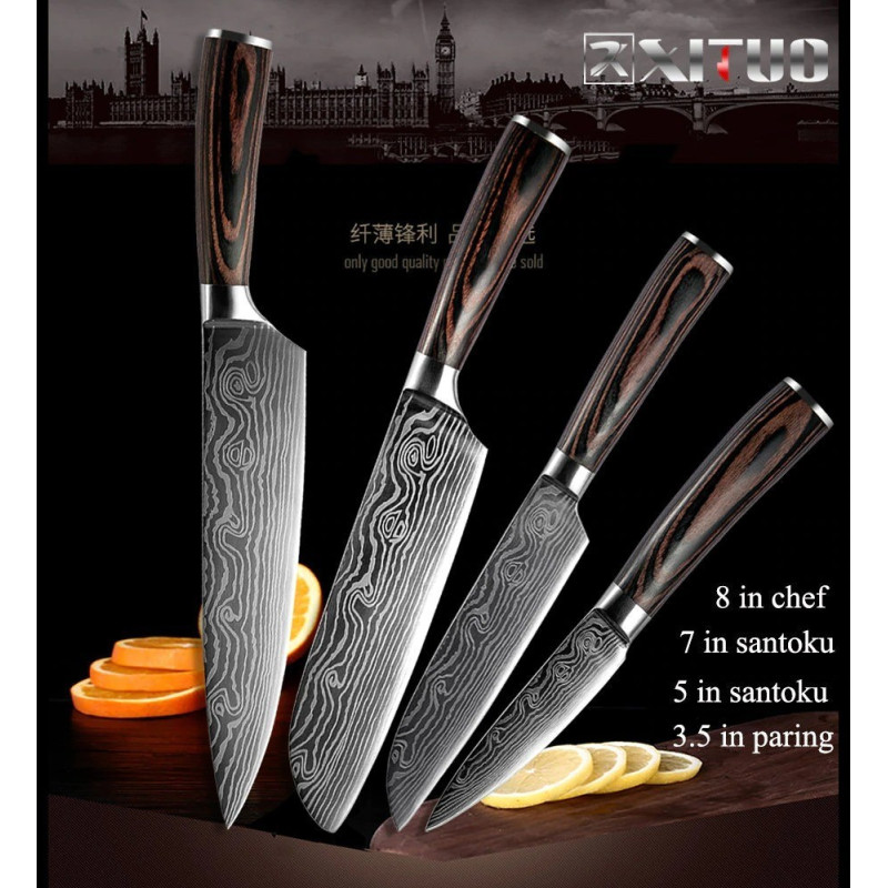 Ножовете от комплекта се предлагат в различни модели и размери. Комплект 1 включва 1 брой готварски нож с дължина на острието 20.5 см. Комплект 2 съдържа 3 броя готварски ножове с различни размери - 8 инча (20.5 см), 5 инча (12.5 см) и 3.5 инча (9.5 см). Комплект 3 включва 4 броя готварски ножове - 8 инча (20.5 см), 5 инча (12.5 см), 3.5 инча (9.5 см) и 7 инча (18 см). А комплект 4 предлага 5 броя готварски ножове - 8 инча (20.5 см), 5 инча (12.5 см), 3.5 инча (9.5 см), 7 инча (18 см) и 8 инча (20 см) за месо.