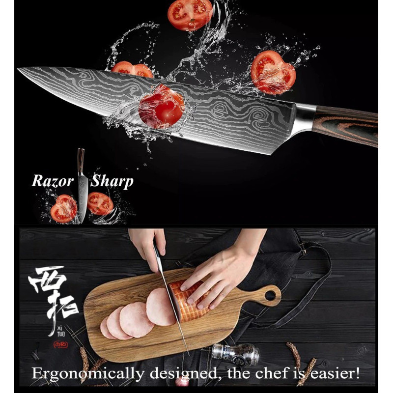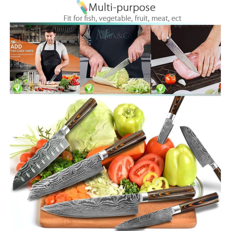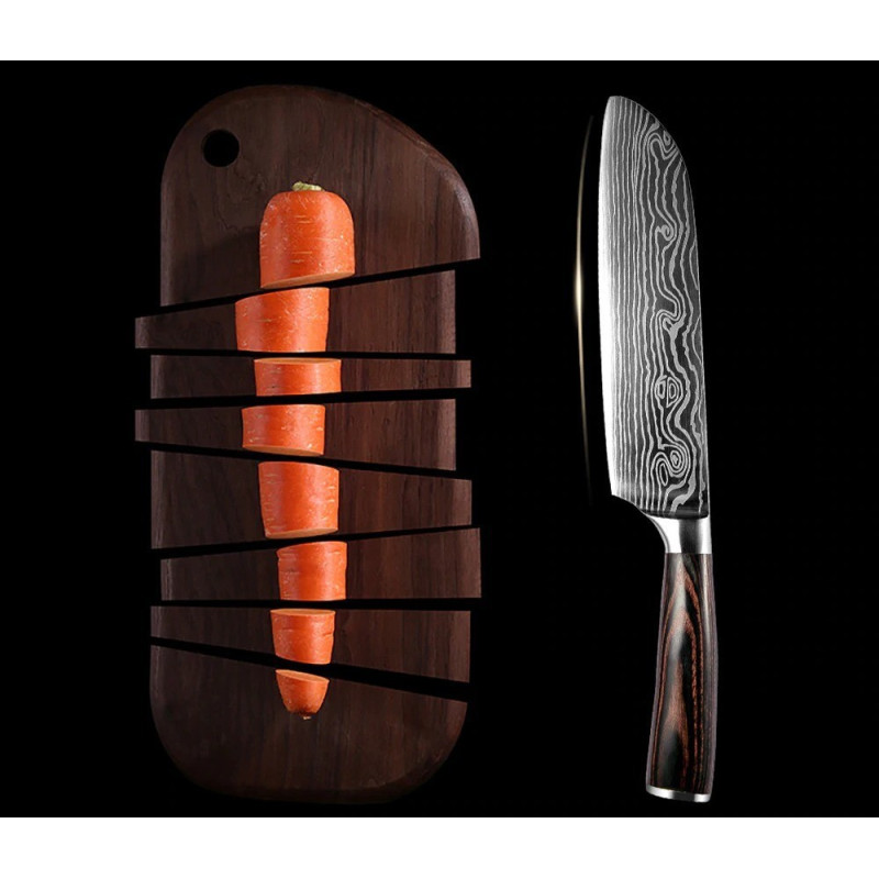 Професионалният кухненски нож от дамаска стомана е идеалният инструмент за всеки готвач, който търси перфектност и прецизност в кухнята. Този нож е изработен от уникална дамаска стомана, която съчетава 33 слоя стомана, по 16 от всяка страна. Това постига изключителна здравина и острота, които са от съществено значение за лекотата на работа.