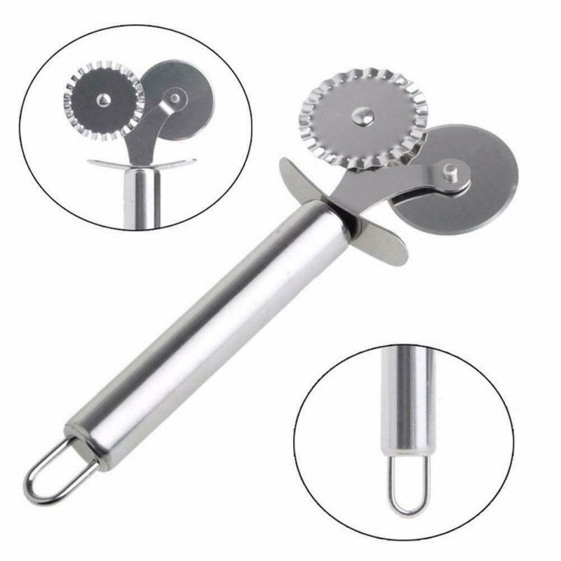 Този нож е изработен от висококачествена неръждаема стомана, което гарантира неговата здравина и дълготрайност. Двете ролки имат диаметър от 5.5 см, което ги прави идеални за рязане на различни видове храна. Размерът на ножа е приблизително 17 х 7,5 х 1,2 см, което го прави удобен за съхранение и пренасяне.