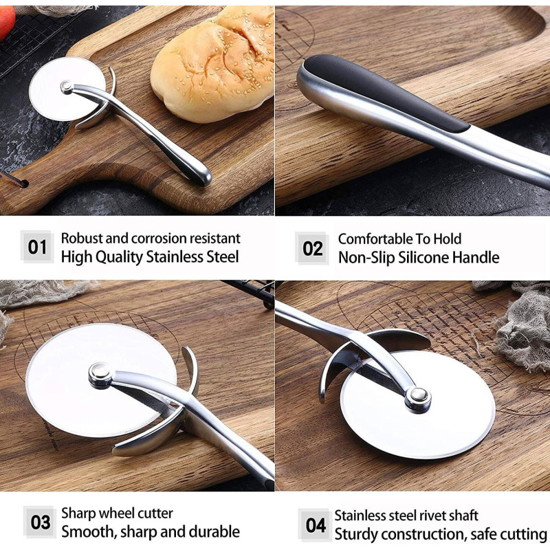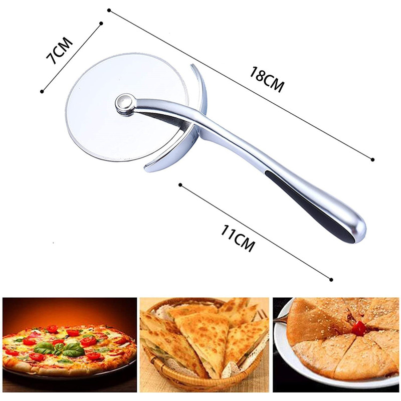 Комплектът включва професионален кръгъл нож за рязане на пица с дължина от 18 см и широчина от 7 см. Неговият доминиращ сребрист цвят ще придаде стил и елегантност на вашата кухня. Внесете професионализъм и перфектен външен вид във вашите пици с нашия нож за рязане.