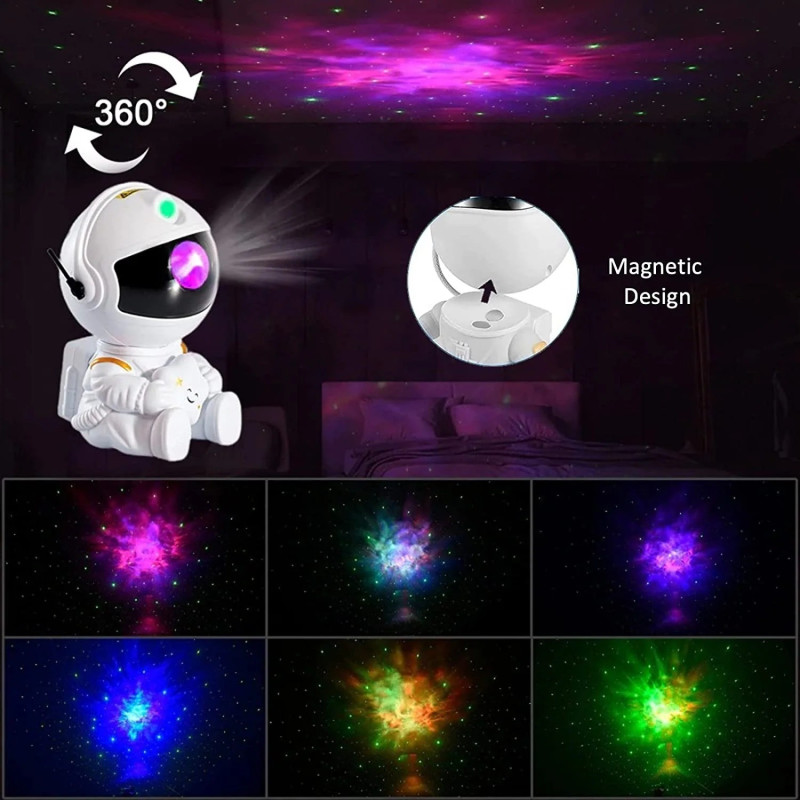 Превърнете стаята си в истинско пътешествие до галактиките! С прожектора астронавт можете да превърнете стаята си в невероятна звездна система, чрез красива проекция на звездното небе с различни цветове, в допълнение към това, че децата астронавт е очарование в декорацията на вашата среда.