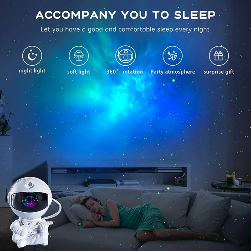 Чрез своите движения и цветове прожектора астронавт осигурява приятна среда, помагаща за облекчаване на безпокойството и подобряване на качеството на съня.