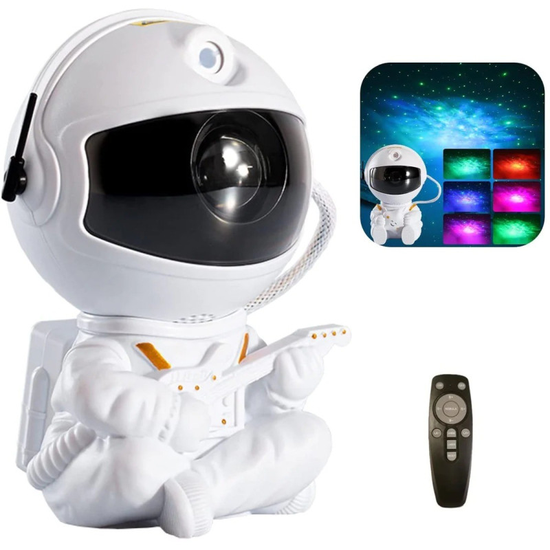 Поставете този удивителен астронавт на масата и оставете неговия проектор да освети цяло звездно небе с галактики и мъглявини. Магнитната глава на астронавта може да се върти на 360 градуса. Предлага се в 2 версии, една с китара и една със звезда.
