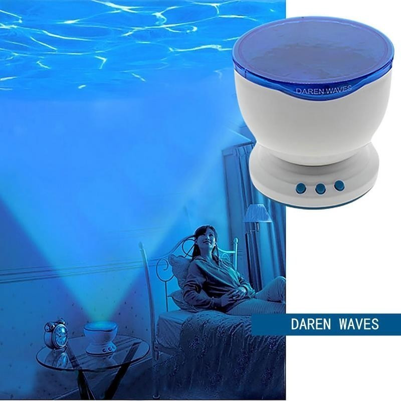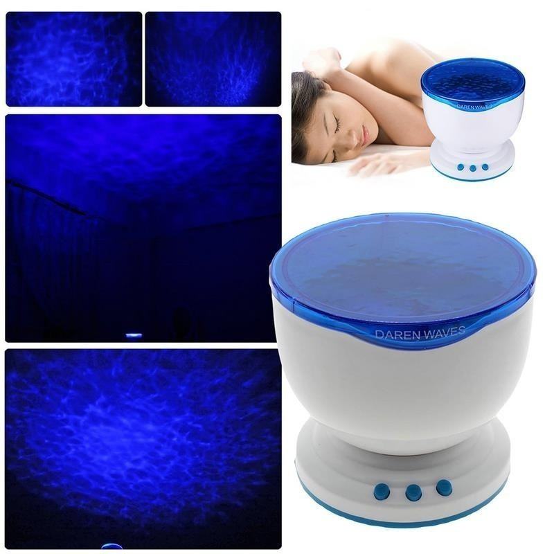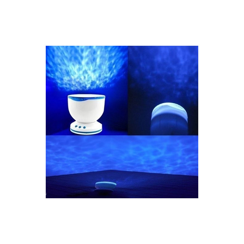 Този проектор работи на принципа на хромотерапията - медицинска терапия, използваща въздействието на цветовете върху психическото състояние и самочувствието на човека. Вие можете да избирате между три различни цветови настройки - зелена, бяла и синя, или да настроите режим, в който цветовете се преливат един в друг. Светлината се проектира на тавана и създава движещи се вълни, като вълните на морето. Вие ще се потопите в спокойствието и ще се почувствате като на брега на морето.