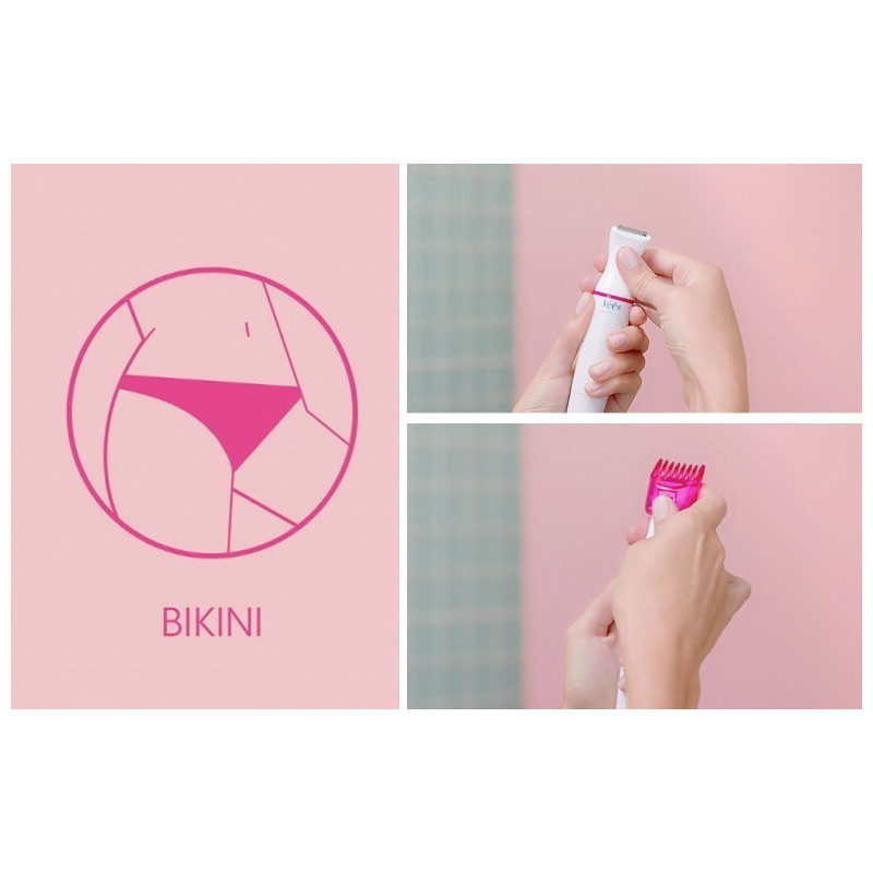 С него можете да се справите с окосмяването на лицето, включително вежди, бакенбарди, над горната устна и брадичката, както и на подмишниците и бикини зоната. Режещите остриета не докосват кожата, което гарантира безопасността на процедурата и изключва риска от порязвания.