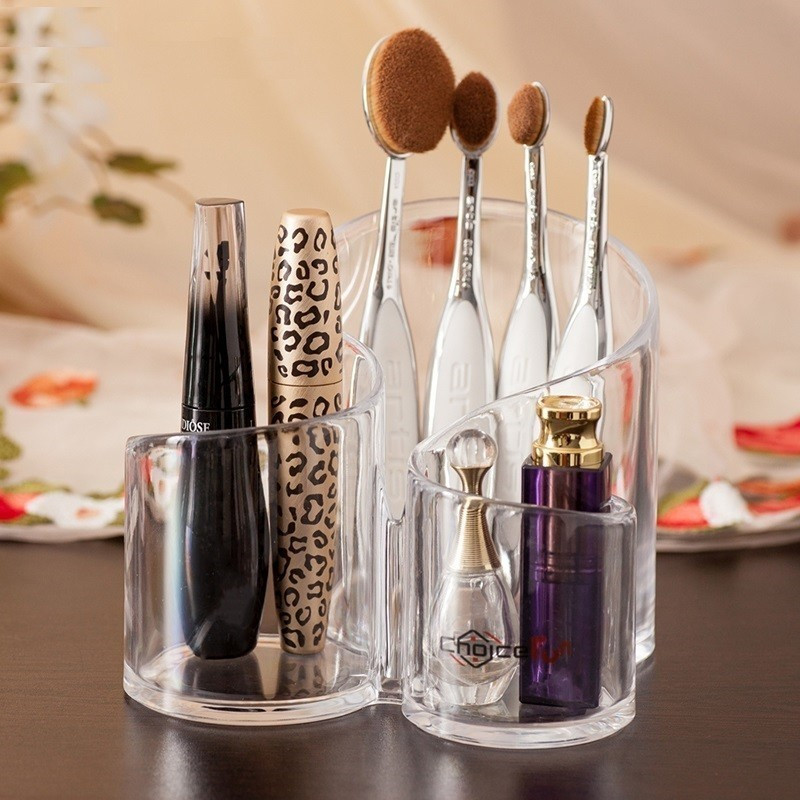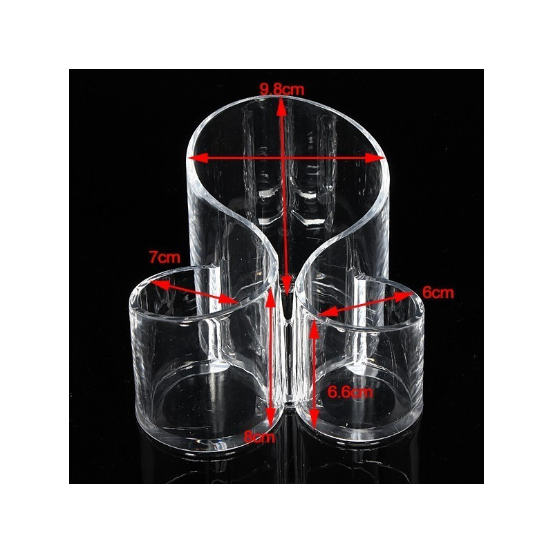 Привличащ погледите и практичен, прозрачният органайзер за козметика с 3 отделения тип моливник - 2207 е перфектното допълнение към вашия бюро или тоалетка. Изработен от висококачествена прозрачна пластмаса, този акрилен настолен органайзер впечатлява със своя функционален дизайн, който осигурява организация на работното място.