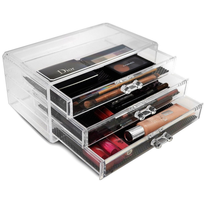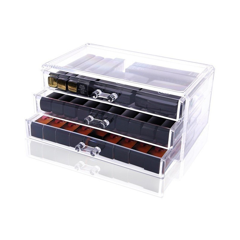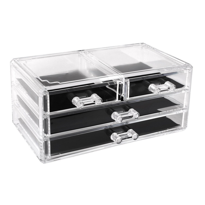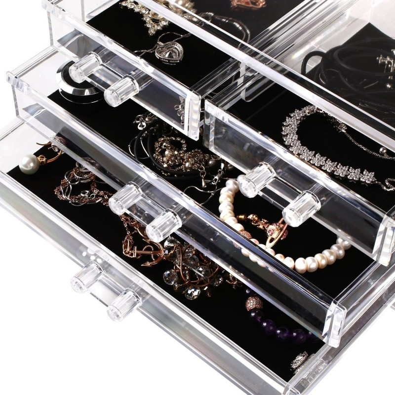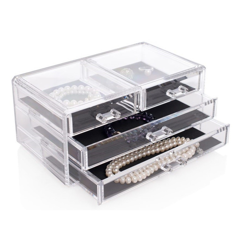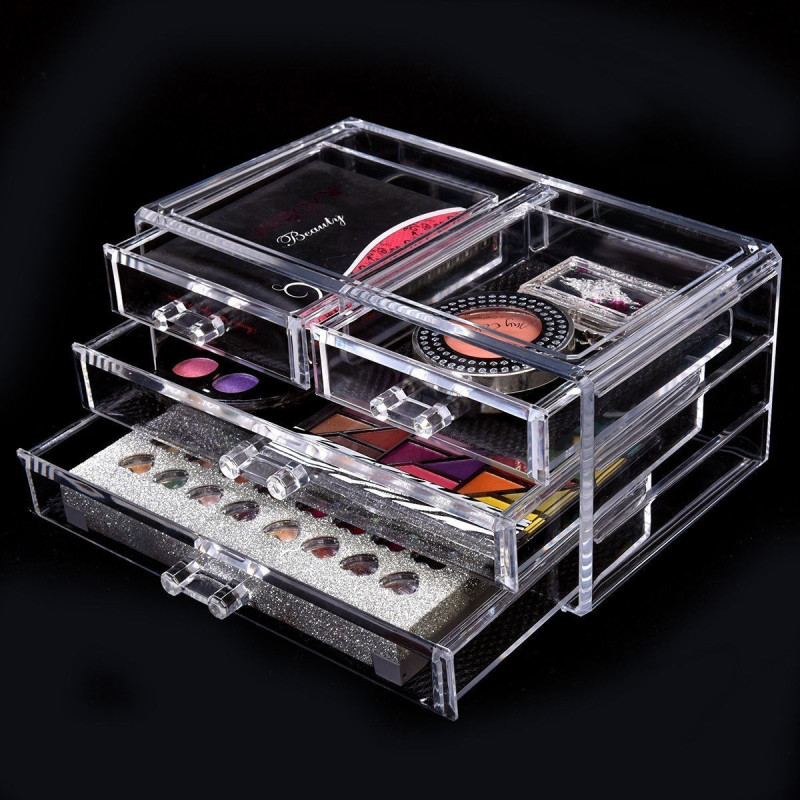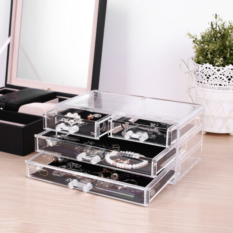 Прозрачен настолен козметичен организатор и кутия за съхранение на бижута с чекмеджета