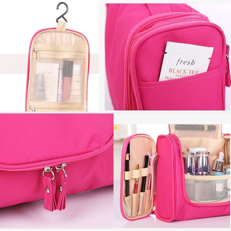 Козметичният несесер за пътуване с кука за закачане е перфектният органайзер за всички, които често пътуват и имат нужда от удобен начин да подредят своята козметика, тоалетни принадлежности и други дребни вещи. Този мултифункционален органайзер е идеален за пътувания, ваканции, бизнес пътувания и други дейности на открито.