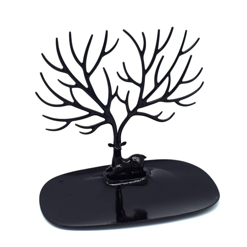 Дизайнерската поставка за бижута с еленови рога е стилен аксесоар за вашия дом. Тя съчетава прекрасен дизайн с практичност, което я прави идеална за всеки интериор. Горната част на поставката е уникално проектирана като дърво, съставено от разклонените рога на елена. Тези клонки са идеални за организиране и подреждане на вашите бижута - обеци, колиета, гривни и пръстени. Поставката отдолу може да се използва за съхранение на още бижута и други предмети.