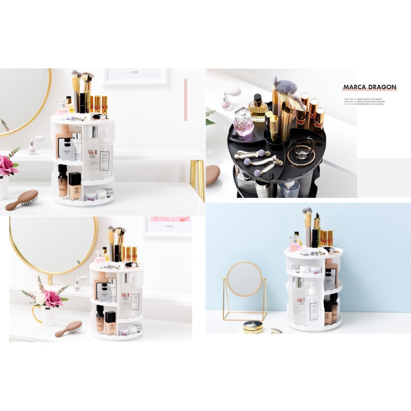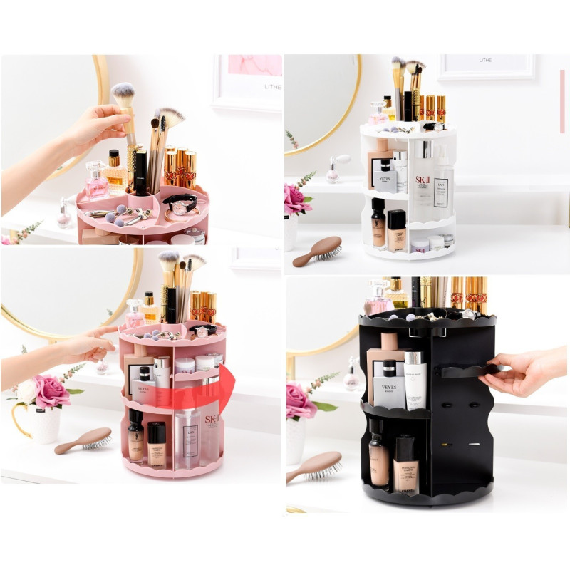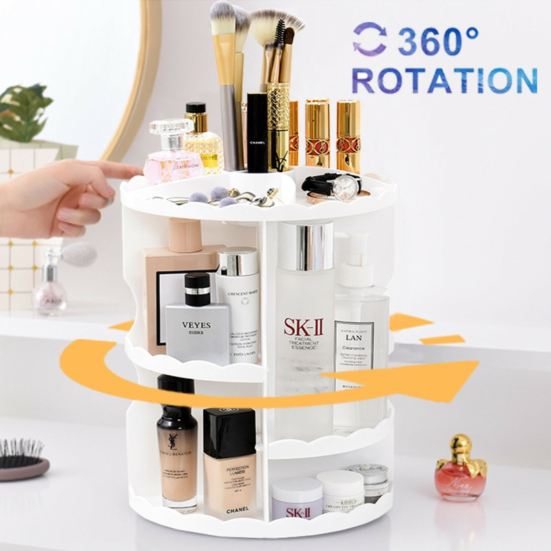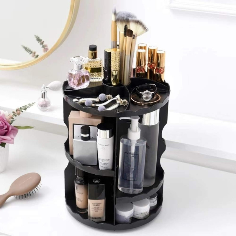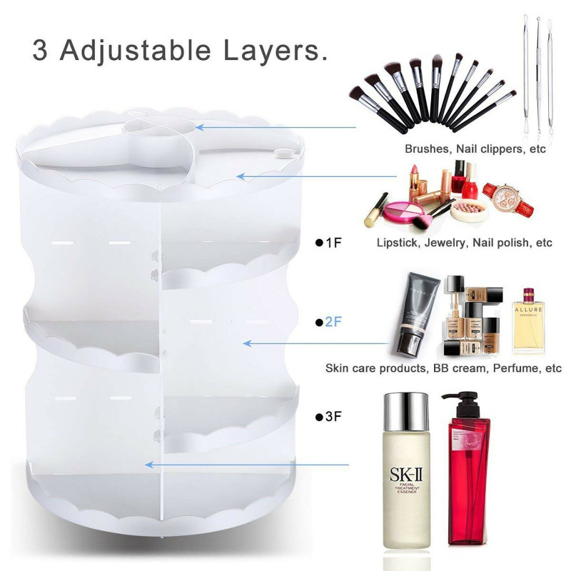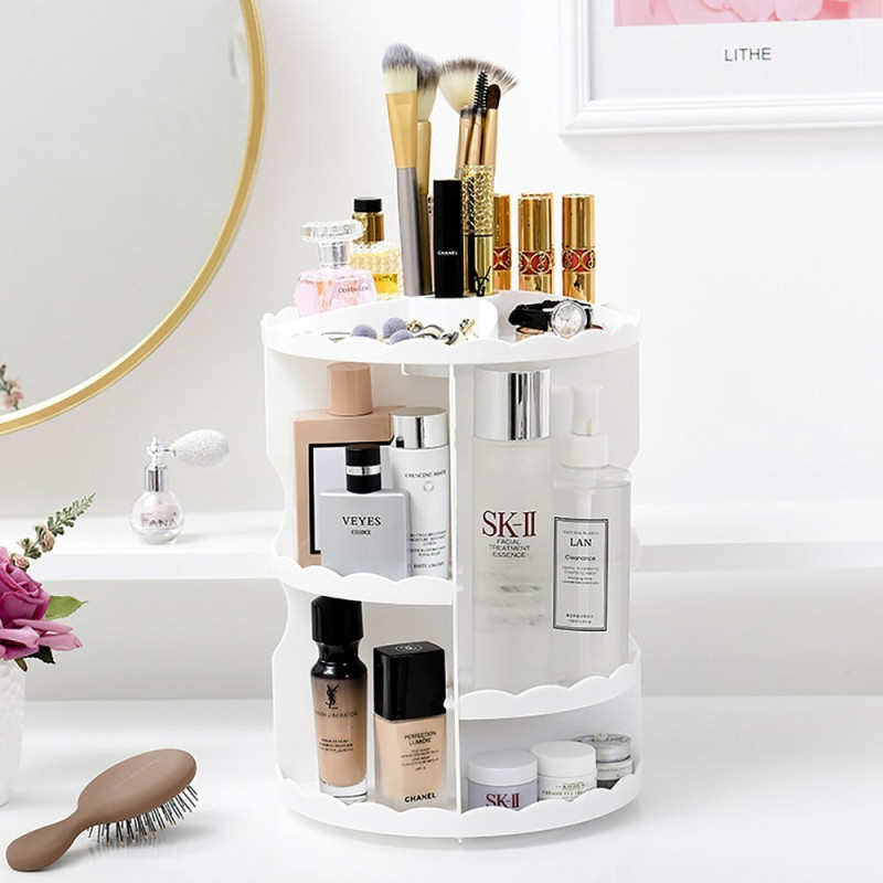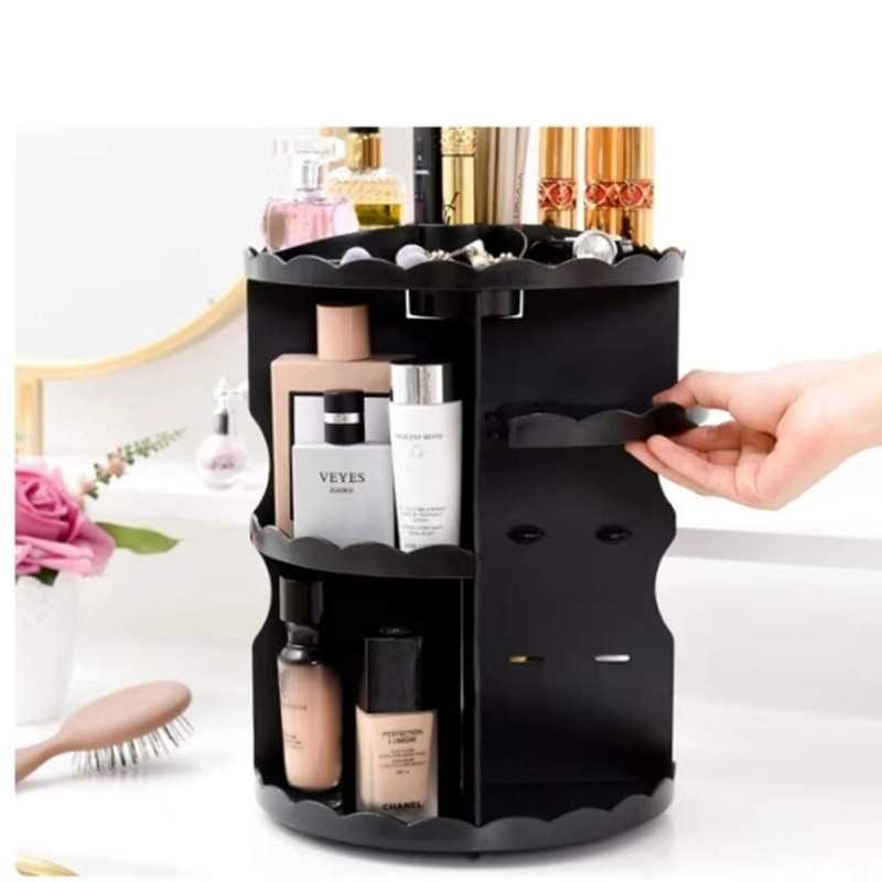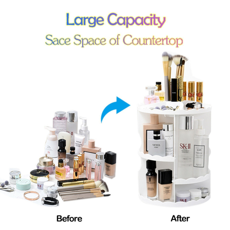 Основната предимство на този органайзер е възможността му да се върти на 360 градуса, което го прави много удобен за използване. С него можете да подредите кремове, парфюми, четки, палитри и сенки, и да ги имате лесен достъп до тях. Вече няма да се налага да търсите продуктите си в шкафове или да протягате към недостижими места.