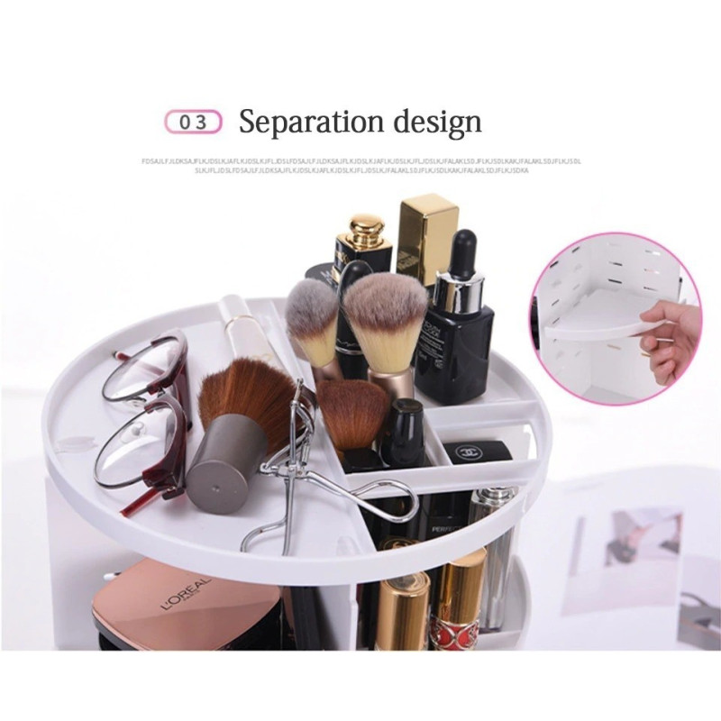 Органайзерът за гримове въртящ се на 360 градуса е перфектното решение за всеки, който обича да има подреден и организиран гримьор. Той е изключително практичен и удобен, като ще събере в себе си всички Ви продукти за козметика и грим.
