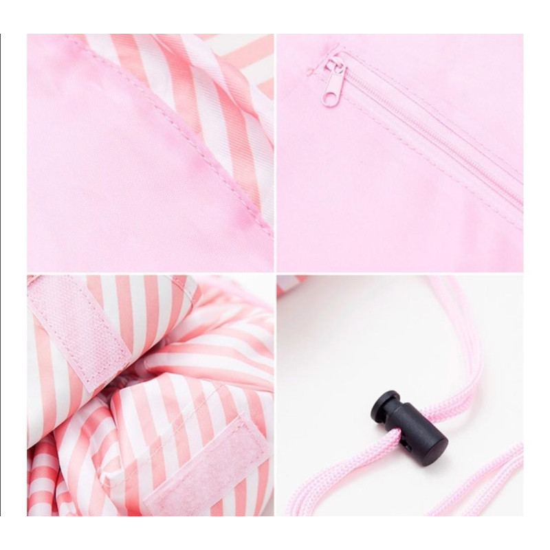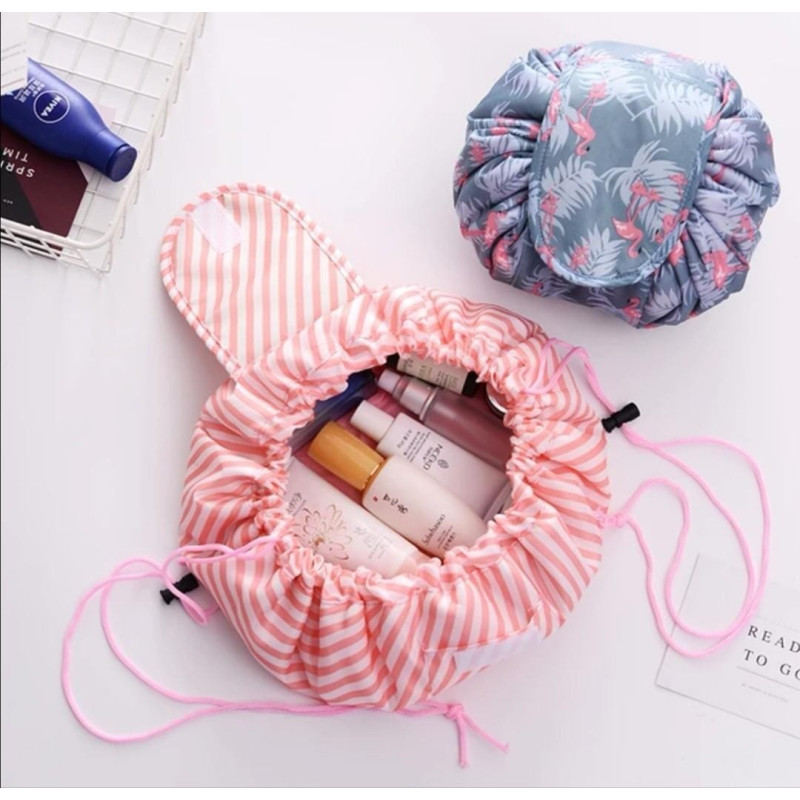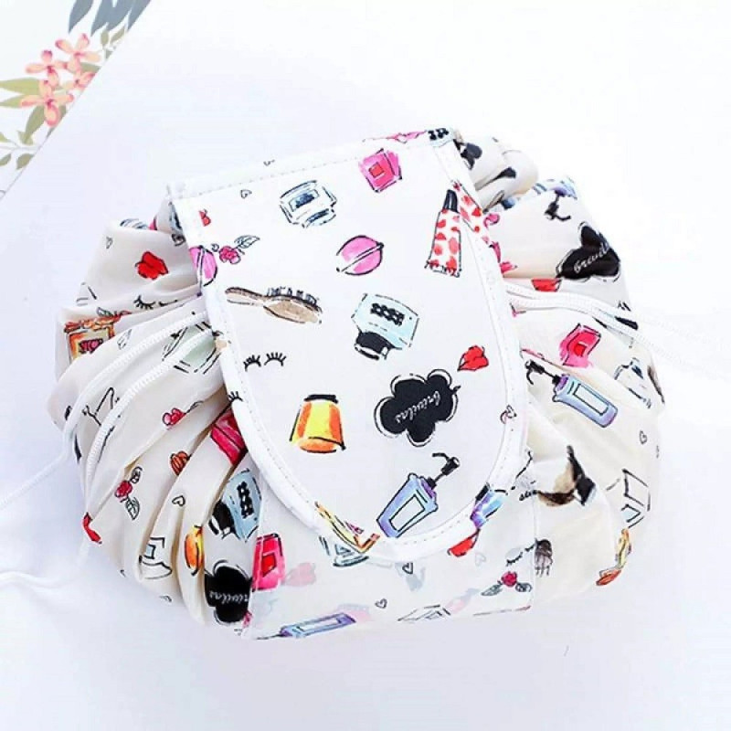 Но не само това, несесерът за гримове Grab & Go може да се използва и като чанта. Просто издърпайте и затягайте, за да затворите торбичката и я носете по удобен начин. Вече няма да се притеснявате за разпиляна козметика или загубени предмети - торбичката ще ги събере всички на едно място.