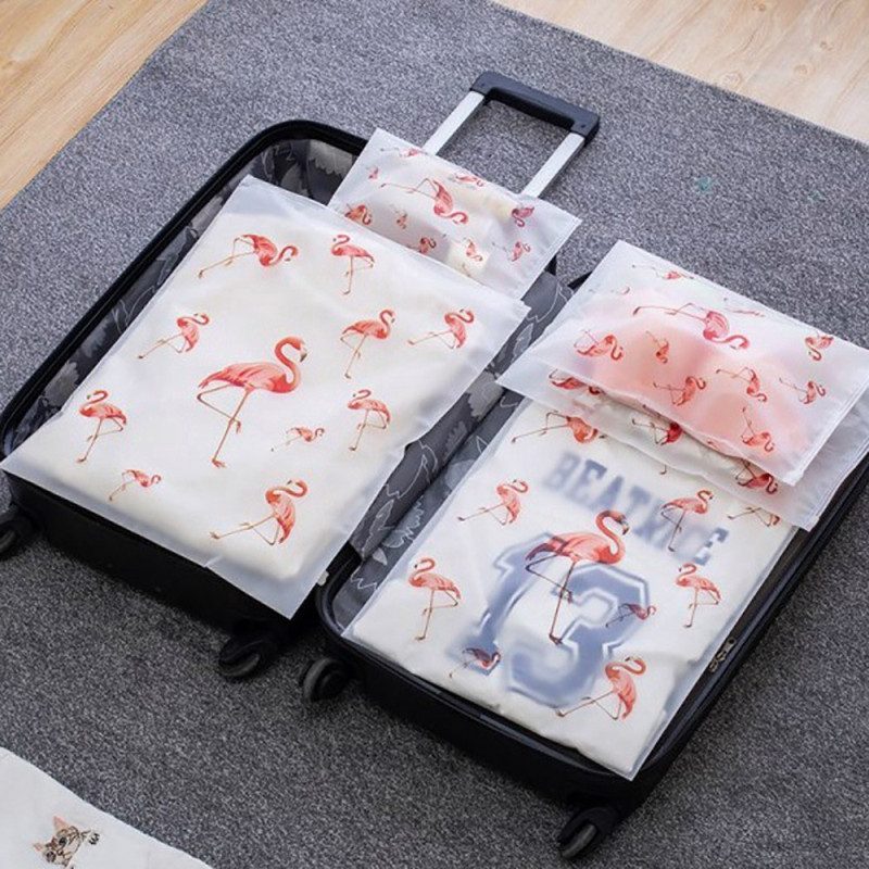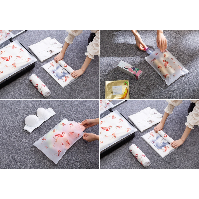 Съхранете дрехите и козметиката си подредено и безпроблемно с нашите комплекти от 5 броя водоустойчиви органайзери за пътуване. Всеки комплект включва 5 полупрозрачни плика с различни размери, които са идеални за съхранение на различни предмети като козметика, бельо, документи и лекарства.