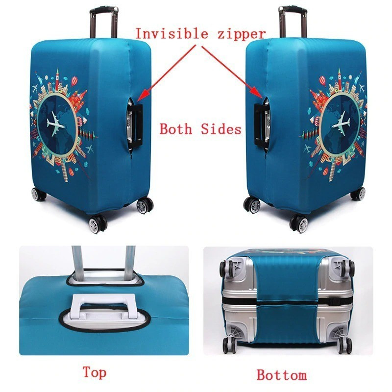 Калъфът обгръща целия куфар, предпазвайки го от драскотини и замърсяване. Освен това, ярките цветове му придават уникален стил и ще ви направят забележими на всяко летище или гара, на които се намирате.