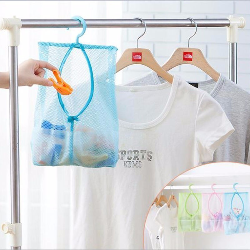 Тази мрежа с кука за окачване е универсална и може да се използва за различни цели. Тя е идеална за съхранение на щипки за пране, принадлежности за баня, чорапи, бельо или играчки. Нейните размери са 29 * 22 см, което я прави достатъчно голяма, за да побере всичко необходимо.