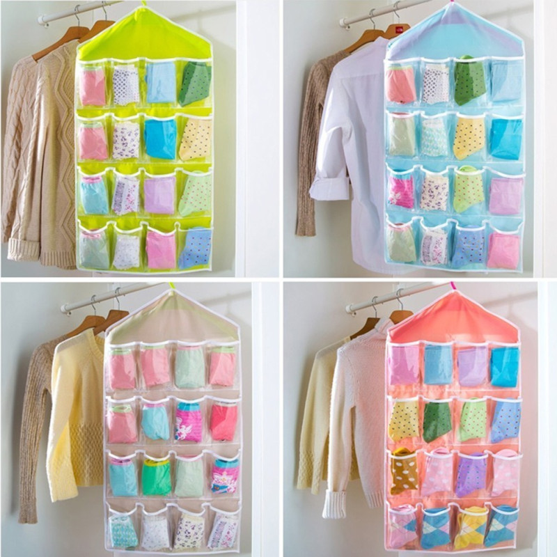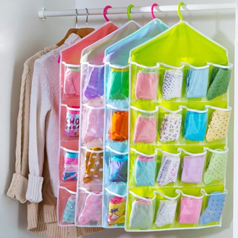 Със своите 16 прозрачни джобчета, този органайзер ви позволява да съхранявате и намирате всичко, което ви е необходимо бързо и лесно. Независимо дали става въпрос за чорапи, бельо, четки за грим, бижута или други дребни предмети, те ще бъдат подредени и сортирани на място.