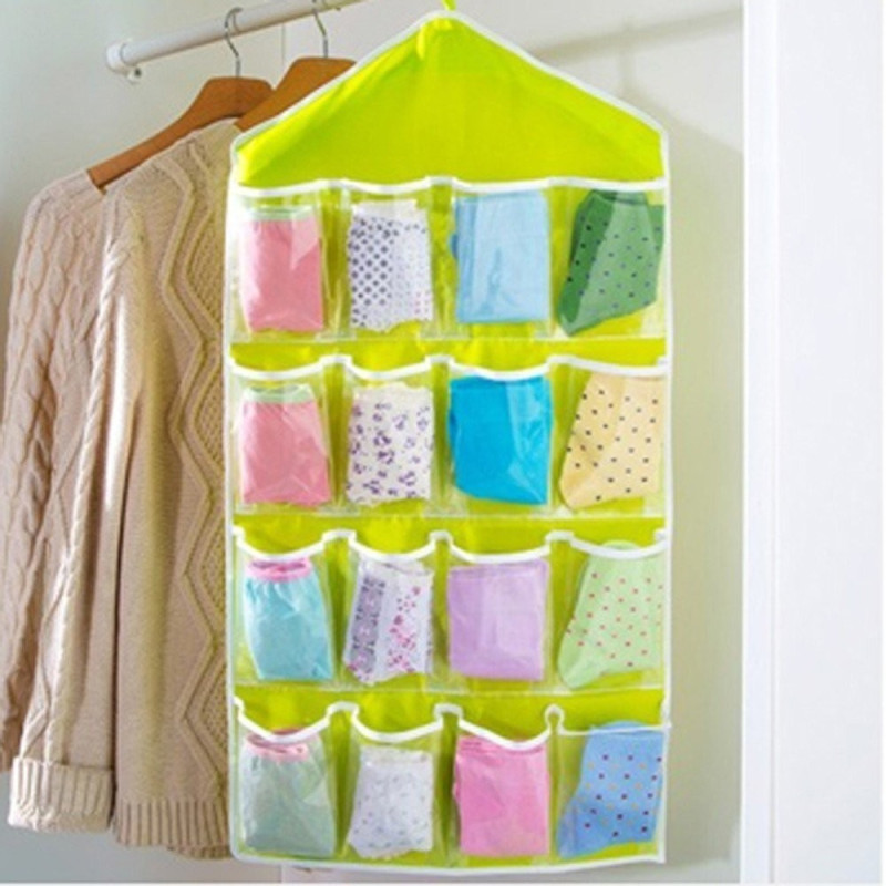 Не се притеснявайте, ако не знаете къде да поставите дребните предмети в дома си. Висящият органайзер за чорапи и бельо с 16 джоба е тук, за да ви помогне да подредите и организирате всичко на едно място. Поръчайте го сега и се насладете на неговата удобност и функционалност!