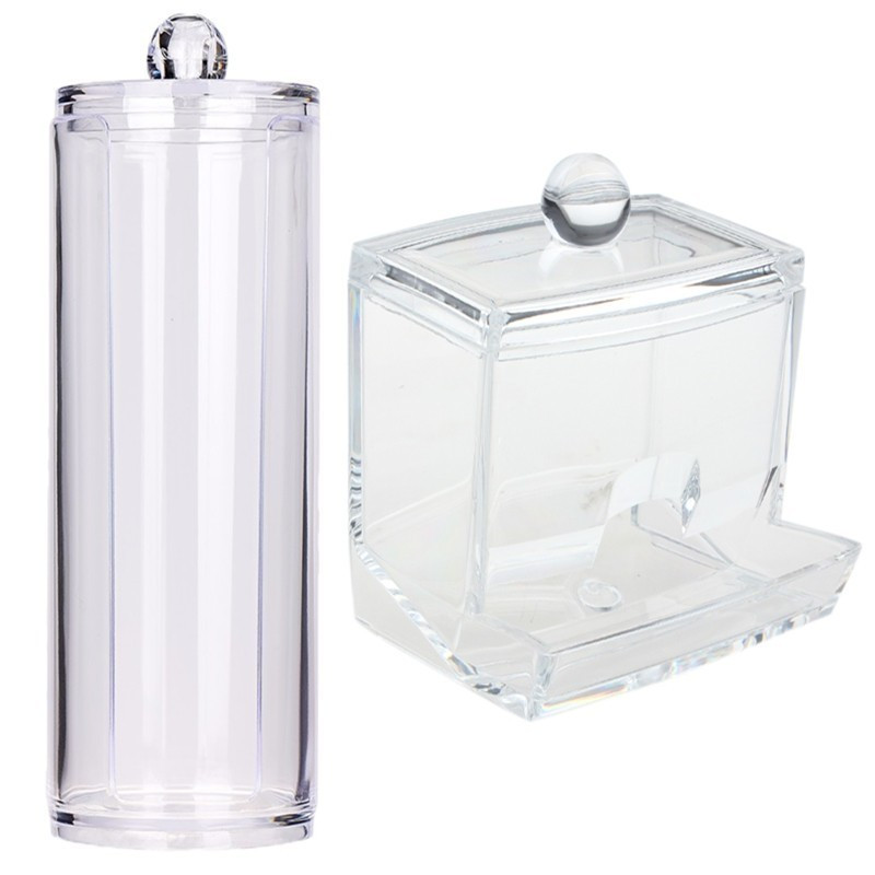 Представяме Ви комплекта от прозрачни кутии за съхранение на тампони за грим и клечки за уши - елегантно и практично решение за организацията на Вашите козметични аксесоари. Тези красиви поставки са идеални както за домашна употреба, така и за салони за красота.