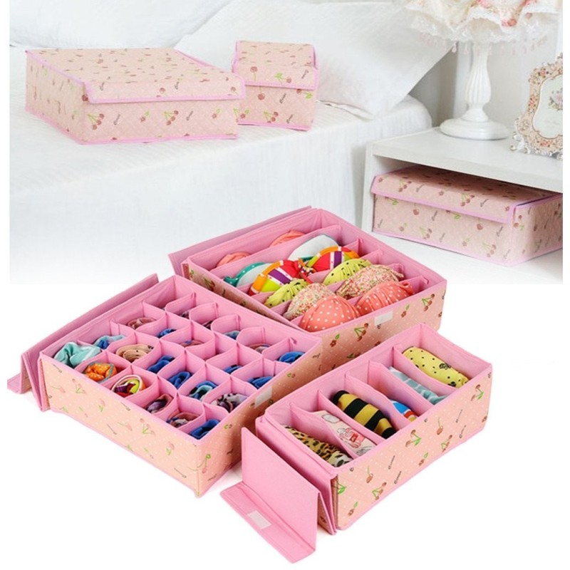 Комплектът включва 3 броя сгъваеми кутии, всяка със собствено отделение, специално предназначено за различни видове бельо. Организирайте своите сутиени, чорапи, вратовръзки, шалове и малки аксесоари по лесен и удобен начин.