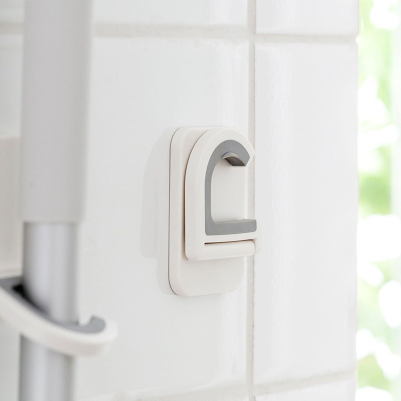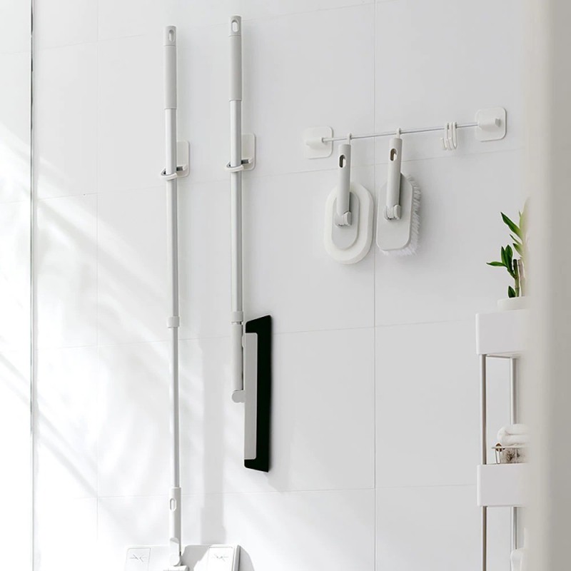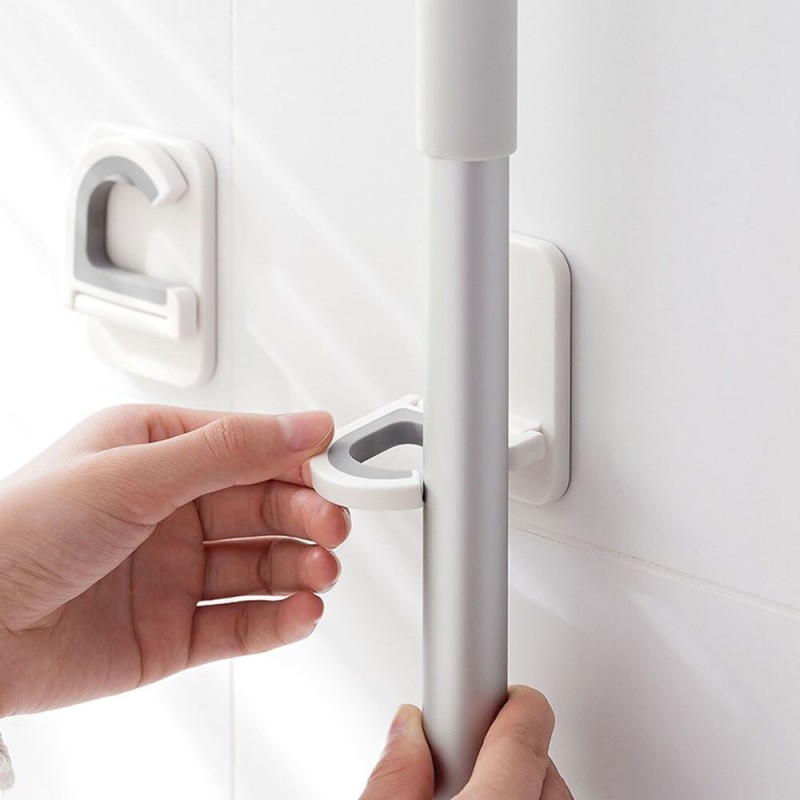 Тази закачалка е снабдена с улей и стопиращ механизъм, който осигурява стабилно закачане на почистващите уреди. Неговият удобен дизайн позволява лесен и бърз монтаж на стена, благодарение на самозалепващия се стикер.