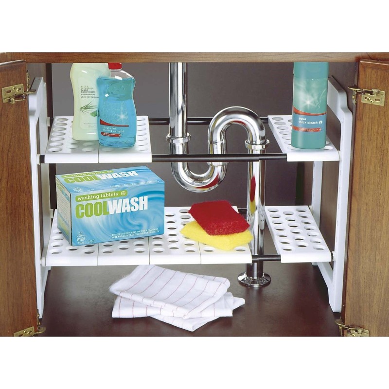 Представяме ви регулиращ се органайзер за шкафа под мивката - иновативно решение за съхранение на кухненска посуда и аксесоари за баня. Ако и вие имате безкрайно количество предмети, които не се събират в шкафовете и чекмеджетата, този органайзер е идеалният избор за вас.