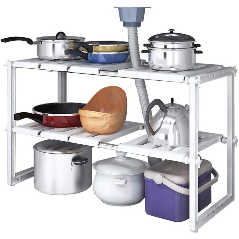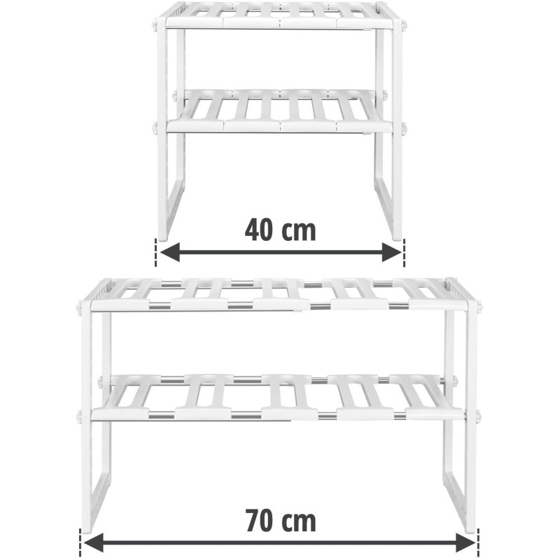 Неговата лесна сглобяемост и поставяне го правят подходящ за всякакви пространства. Имайте предвид, че максималният капацитет на едно ниво е 5 кг. Този органайзер е идеално средство за съхранение под мивката на всяка кухня или баня.