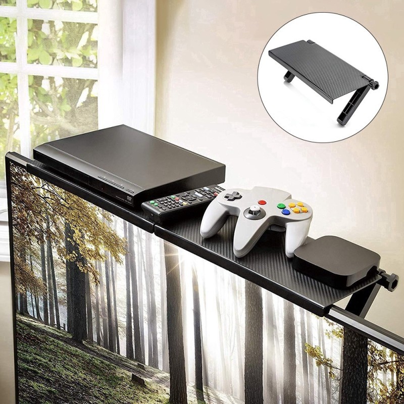 Имаме удоволствието да Ви представим регулиращата се поставка за аксесоари към телевизор Screen Top Shelf. Тази удобна стойка ще освободи пространството около Вашия телевизор и ще Ви помогне да подредите всички необходими аксесоари на едно място. С нея можете да поставите рутер, тонколони, дистанционно управление и други дребни предмети, които обикновено се разпръсват наоколо.