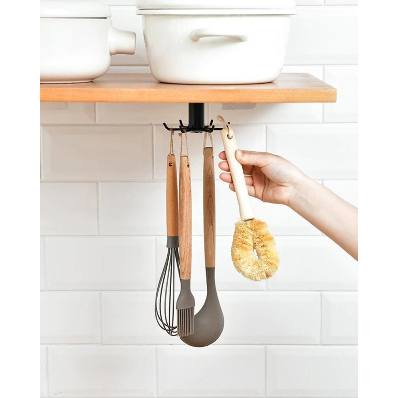 Въртящата се закачалка за кухненски прибори е удобно и практично решение за всяка кухня. Тя ви помага да спестите място и ви дава лесен достъп до всеки необходим прибор. Закачалката се монтира на гладки повърхности с помощта на здрава самозалепваща лепенка, без да е необходимо пробиване на дупки.