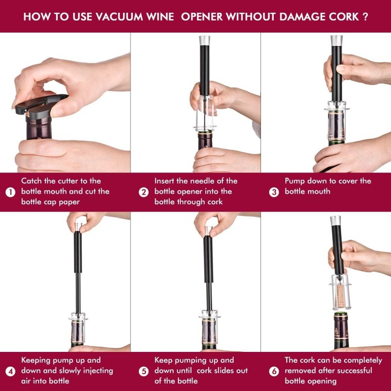 Сет за вино, Тирбушон с въздух Резачка за фолио Тапа с вакуум помпа