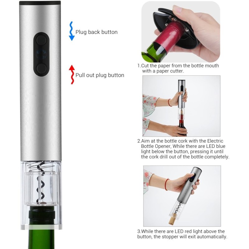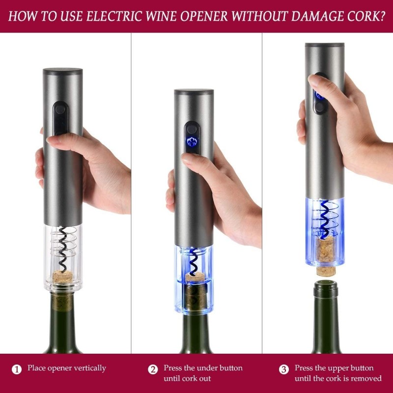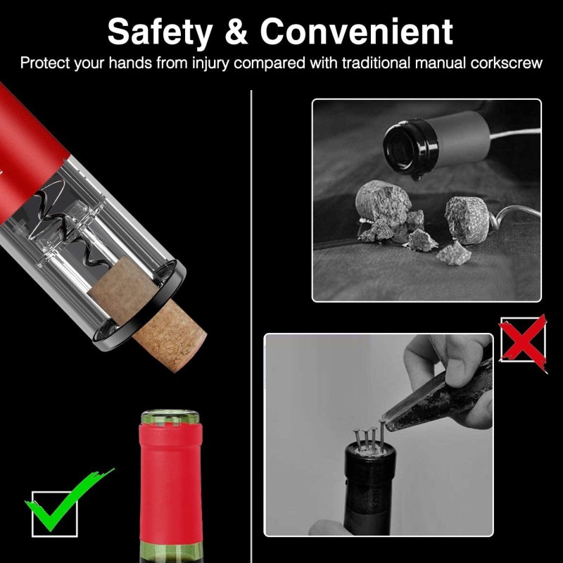 Не се притеснявайте от сложното отваряне на бутилките вино. С електрическия тирбушон за отваряне на вино, ще можете да се наслаждавате на любимото си вино бързо и лесно, без да полагате усилия. Поглезете сетивата си и се насладете на перфектното отваряне на всяка бутилка.
