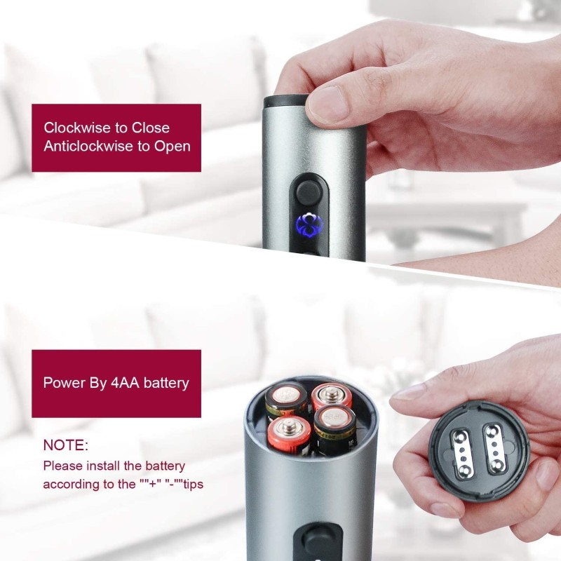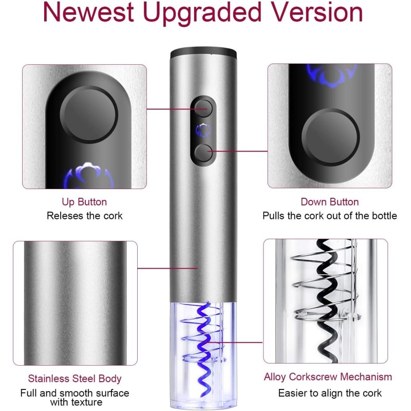Този електрически тирбушон е предлаган в два модела, които могат да бъдат захранвани както от батерии, така и от акумулаторна батерия. С нови батерии или напълно заредена акумулаторна батерия, можете да отворите до 40 бутилки вино. Тирбушоните са съвместими с всички бутилки вино със стандартна форма.