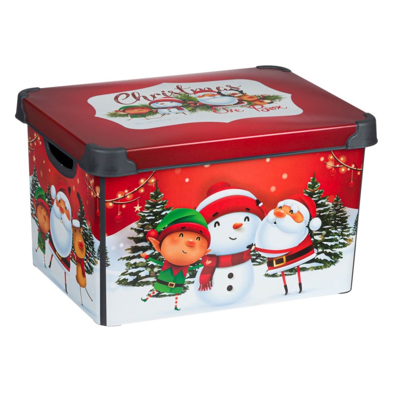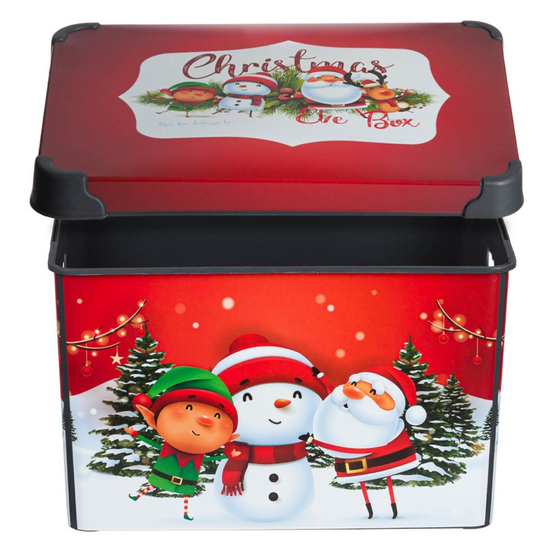 Χριστουγεννιάτικο Κουτί Αποθήκευσης Πλαστικό με Καπάκι Άγιος Βασίλης Χιονάνθρωπος Ξωτικό 20lt