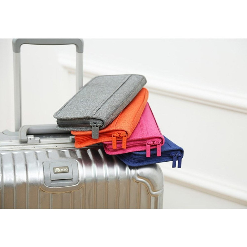 Калъф-портфейлът за лични и пътни документи е идеалният органайзер за всички, които пътуват често или имат нужда от удобен начин за съхранение на документи. Този практичен органайзер е проектиран с една цел - да улесни съхранението и употребата на различни видове документи по време на път. Независимо дали става въпрос за паспорти, самолетни билети, карти или дори химикалка, този калъф ще ви помогне да ги организирате и носите с лекота.