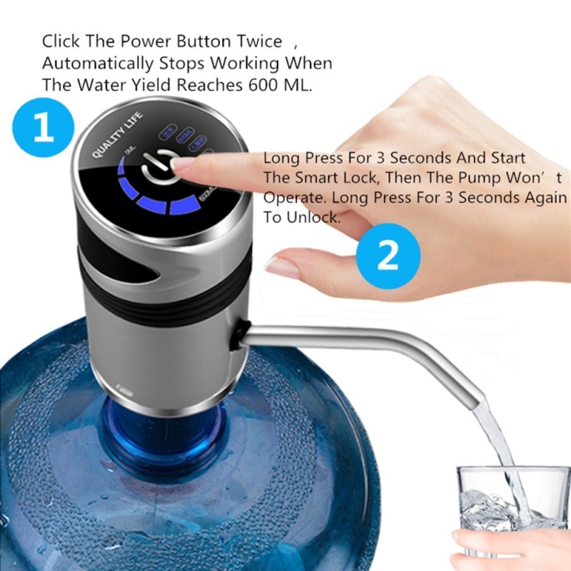 С едно докосване на бутона, можете лесно да включите и изключите диспенсъра за вода. Той разполага със страхотен дизайн, който не само е лесен за поддръжка, но и се адаптира към всички типове бутилки без уплътнители, като просто го поставите на бутилката като тапа.