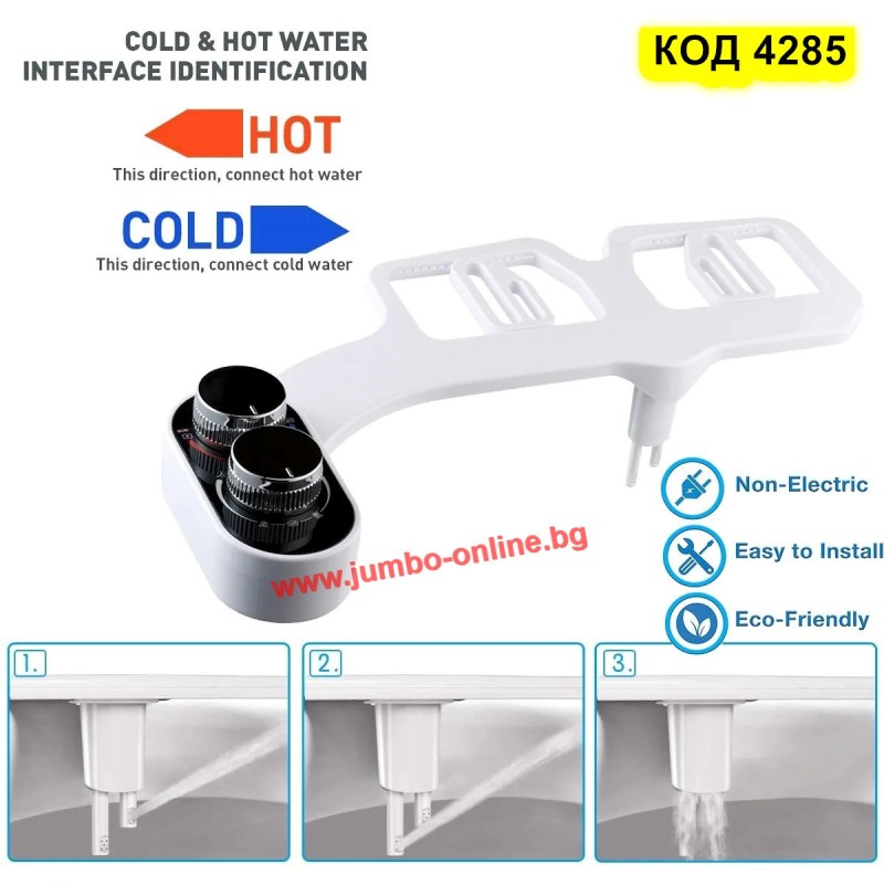 Приставка биде за тоалетна, двойни дюзи за гореща/студена вода
