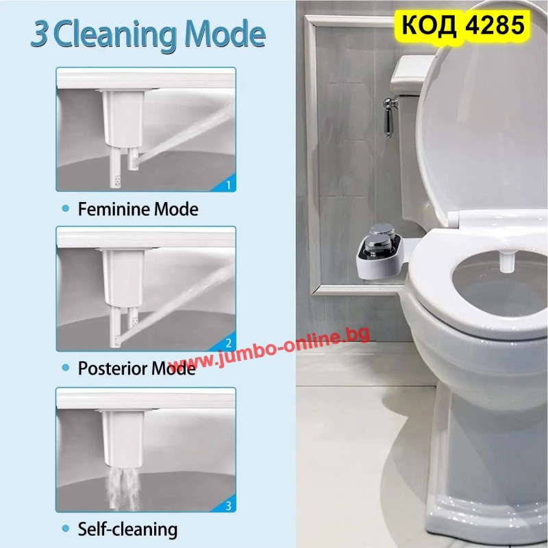 Приставката биде за тоалетна чиния спомага за поддържането на отлична лична хигиена и облекчава дискомфорта при хемороиди. Освен това, тя намалява употребата на тоалетна хартия. Едно от най-големите ѝ предимства е, че не изисква електричество и може да бъде инсталирана с лекота. Оборудвана е със самопочистващи се двойни дюзи, като едната е проектирана специално за дамска хигиена. Налягането и температурата на водата могат да се регулират според Вашите предпочитания.