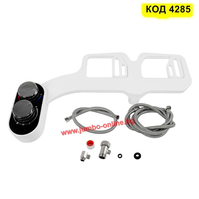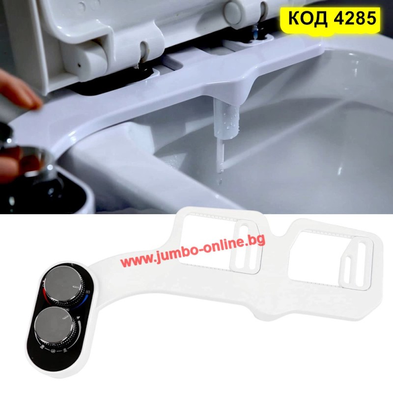 Тази удобна за монтаж приставка биде за тоалетна чиния с двойни дюзи и месингови адаптери е създадена за ефективно почистване с топла или студена вода след ползване на тоалетната.