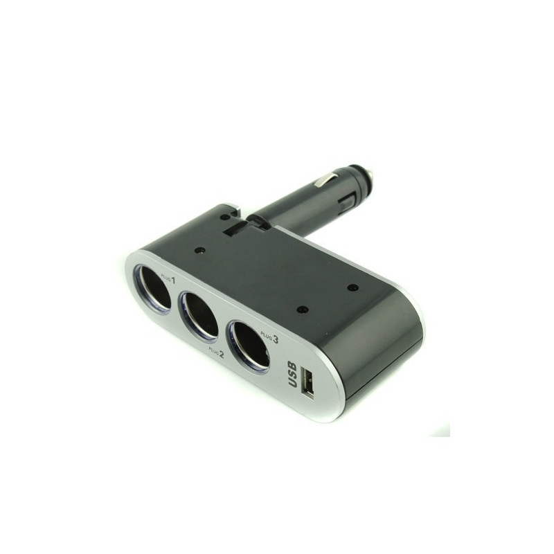 "Разклонител за запалка с 3 гнезда и USB, 12V-24V, Твърдо рамо"