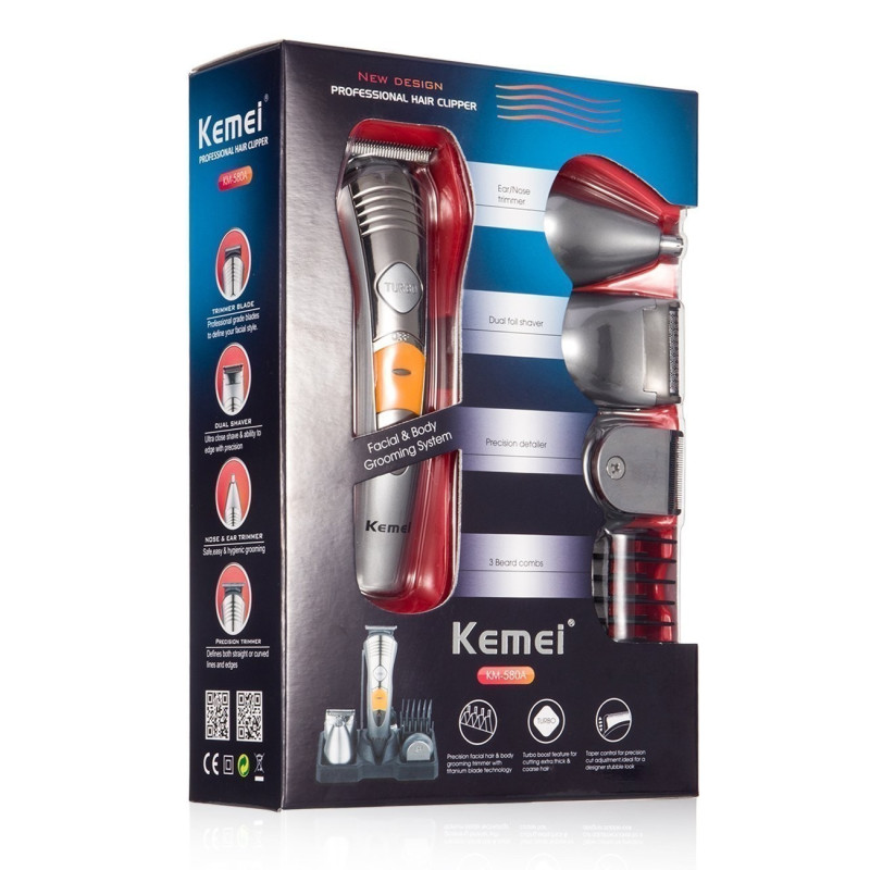 Комплектът включва всичко необходимо за перфектно подстригване и оформяне на брада. В него ще намерите машинка за подстригване, приставка за подстригване на нос и уши, приставка за бръснене на брада, приставка за обиране на бакенбарди и оформяне на брада, както и приставки за подстригване с различни дължини.