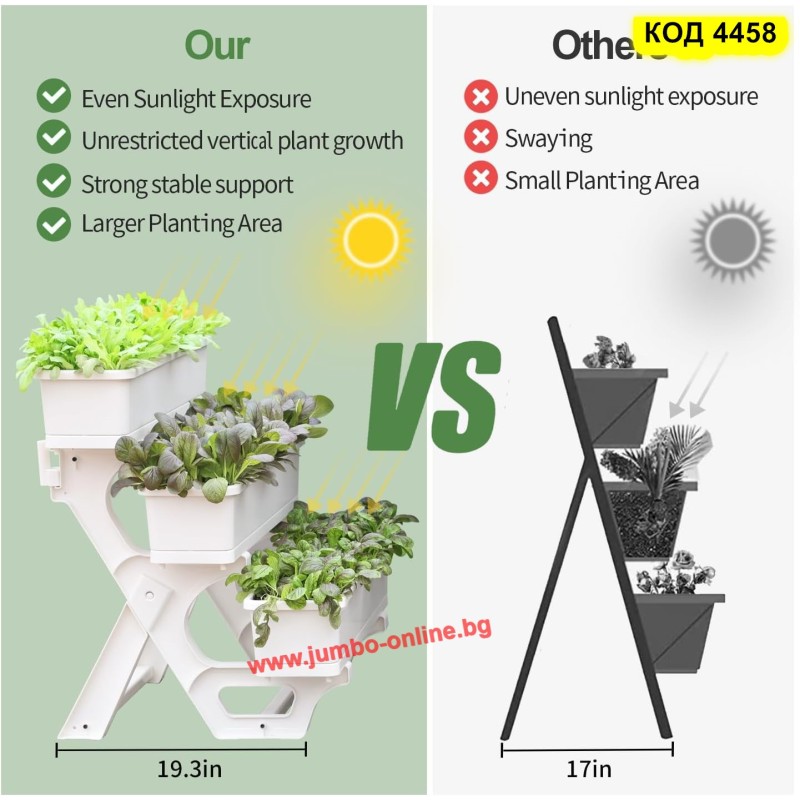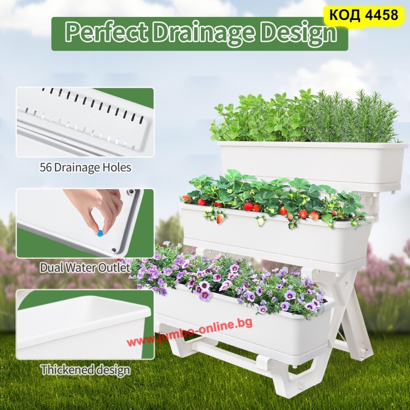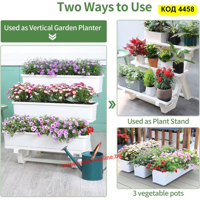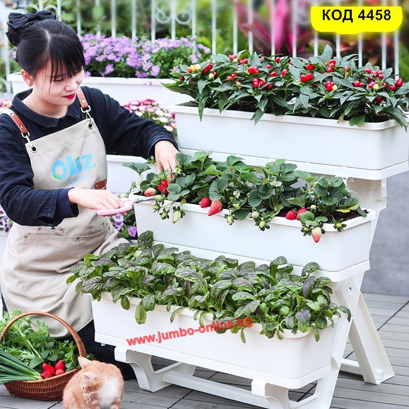 Големи саксии със стойка за отглеждане на цветя, плодове и зеленчуци