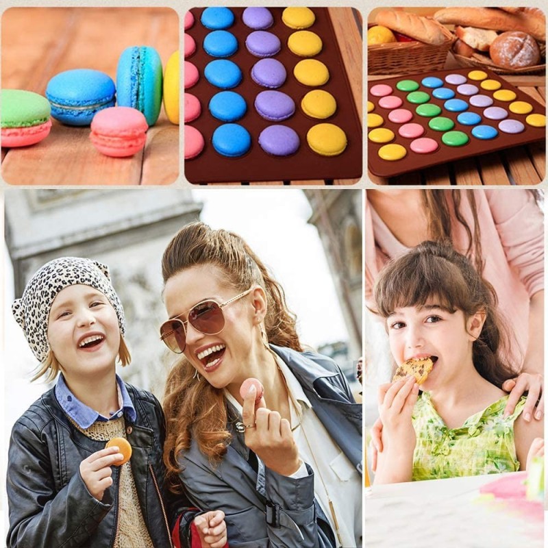 Освен за макарони, тази подложка може да се използва и за приготвяне на други сладкарски изделия като целувки или бисквити. Тя има незалепваща повърхност, която гарантира, че нищо не ще се залепи и ще бъде лесно да извадите вашите изделия от нея.