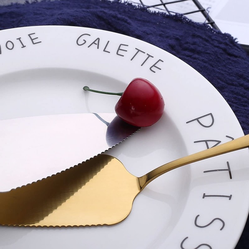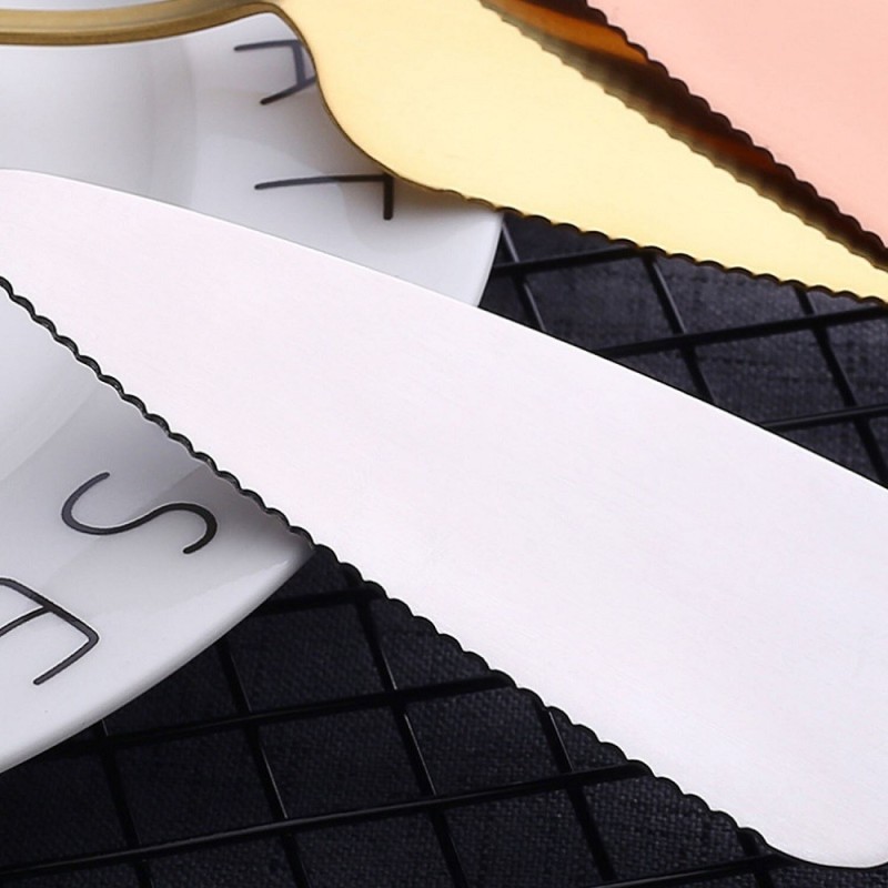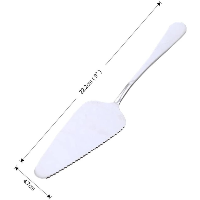 С елегантния си дизайн и изчистените си линии, тази лопатка ще внесе нотка на изисканост във вашата кухня или на вашето събитие. Единият край на лопатката е назъбен, което позволява по-лесно и чисто разрязване на сладкишите, без да ги разрушава.