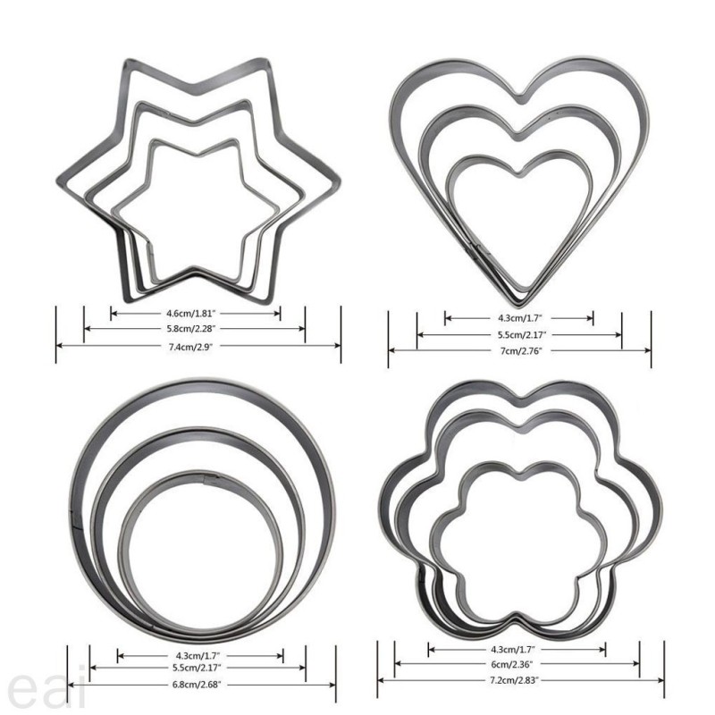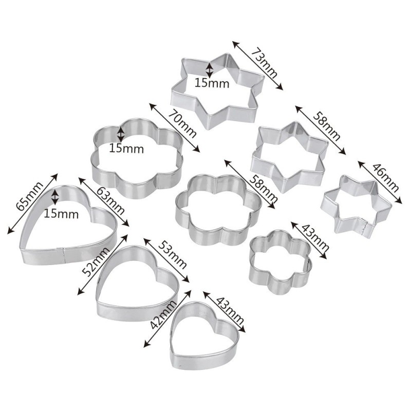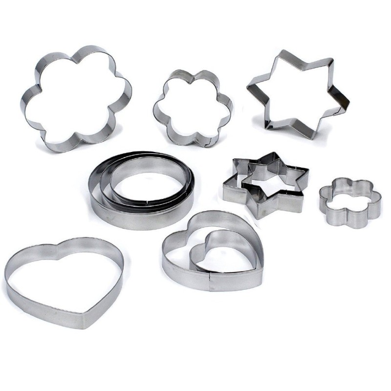 Комплектът е изработен от неръждаема стомана, което гарантира здравина и дълготрайност. Включва сърца, звезди, рингове и цветя с различен размер, предоставяйки ви разнообразие и възможността да създавате невероятни десерти.