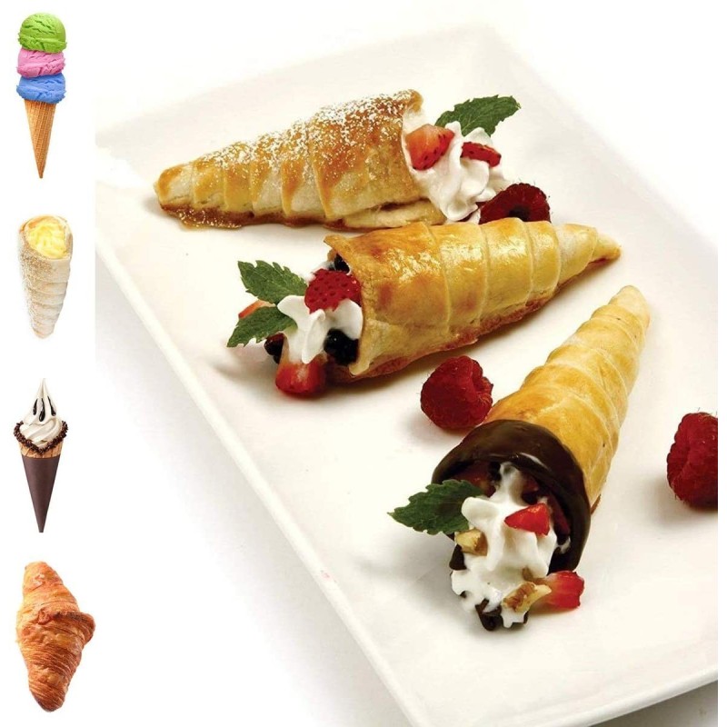 Снабдени с равно дъно, тези фунийки позволяват печене в изправено положение, което ви позволява да приготвите по-голямо количество сладкиши във фурната едновременно. Благодарение на материала от неръждаема стомана, фунийките са изключително здрави и издържливи, без остри и режещи ръбове.