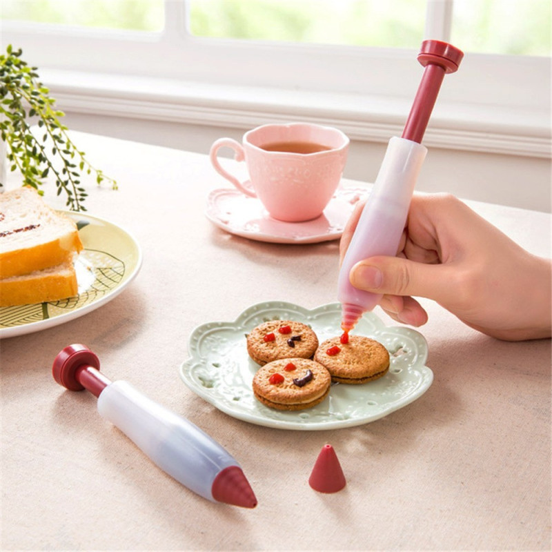С този иновативен инструмент можете да създавате невероятни украси и да напишете надписи по ваш избор, благодарение на силиконовото тяло, което е подобно на писалка за писане. Просто напълнете тубичката с вашите предпочитани глазури, сметана или крем и се отдайте на креативността си!