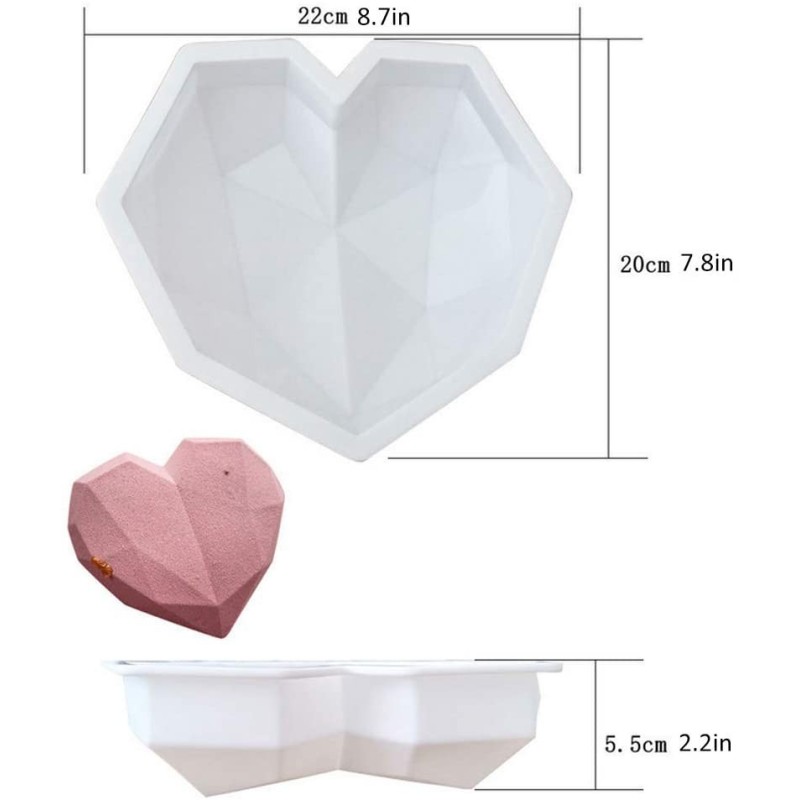 С 3D Голямото релефно сърце, диамантено, силиконов молд форма за кекс и торта, вие няма да правите компромиси с вкуса и външния вид на вашите десерти. Със сигурност този уникален продукт ще направи всяко събитие още по-специално и запомнящо се. Поръчайте сега и се насладете на безгрижни моменти в кухнята!